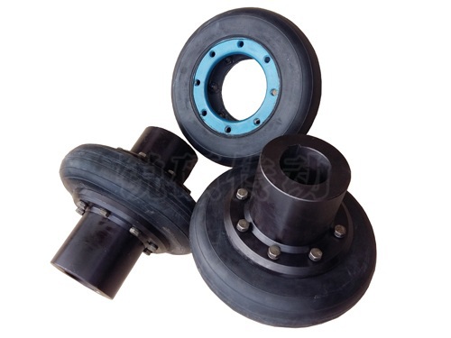 UL型轮胎联轴器的橡胶元件(轮胎)与金属压板硫化粘结在一起,装配时用螺栓直接与两半连轴器联结