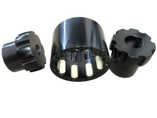 ●两个半联轴节凸缘的外缘和外套的内缘制成半径相同的半元形凹槽,组合成柱销孔,以嵌入柱销。主动轴半联轴节通过柱销,带动外套,外套通过柱销带动从动轴半联轴节转动,以传递扭矩。