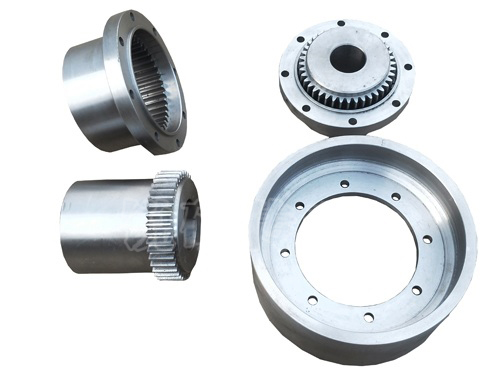 NGCLZ型带制动轮鼓形齿式联轴器,齿式联轴器是由齿数相同的内齿圈和带外齿的凸缘半联轴器等零件组成。外齿分为直齿和鼓形齿两种齿形,所谓鼓形齿即为将外齿 制成球面,球面中心在齿轮轴线上,齿侧间隙较一般齿轮大,鼓形齿联轴器可允许较大的角位移(相对于直齿联轴器),可改善齿的接触条件,提高传递转矩的能 力,延长使用寿命。有角位移时沿齿宽的接触状态。 NGCLZ制动轮鼓形齿式联轴器具有少量轴线偏移补偿性能,不能缓冲、减振。外形尺寸小,理论上传递转矩大,需要润滑、密封,但噪声较大、价格贵,用于联接水平两同轴线轴系传动。用于低速、重载工况条件下联接水平两同轴线,如冶金机械、重型机械等。不适用于高速、高精度的轴系传动,起动频繁、正反转多变的工况不宜采用。